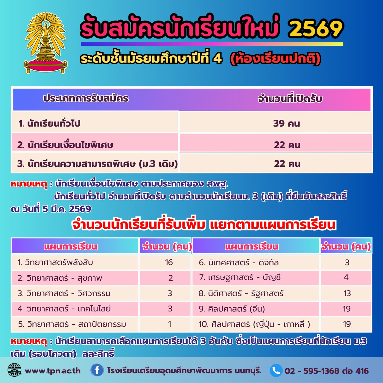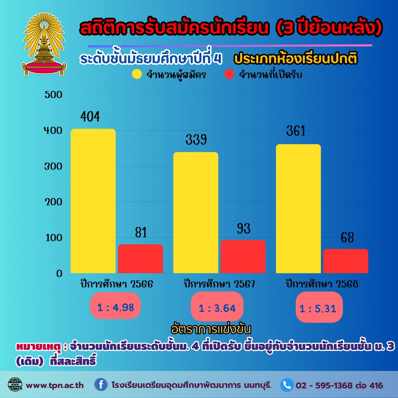 จำนวนสมัครนักเรียน ม.4
